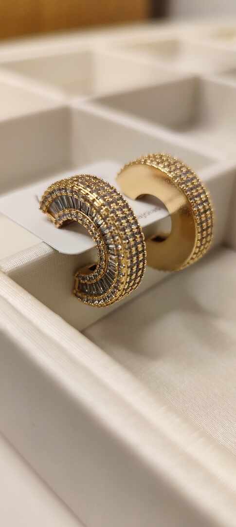 - BRINCO MEIA ARGOLA BOJUDA TODA CRAVEJADA ZIRCONIAS (CRISTAL E COLORIDA)