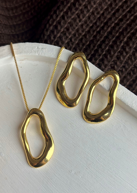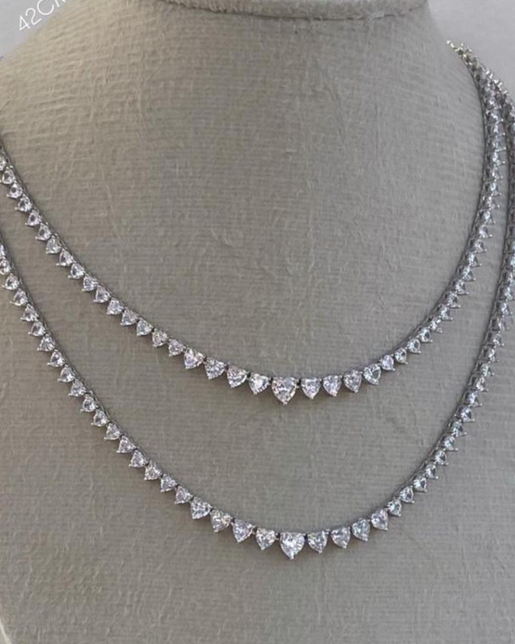 - CONJUNTO COLAR E BRINCO CORAÇÕES CRAVEJADOS RO