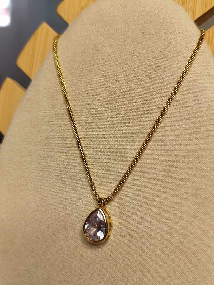 - COLAR MALHA GROSSA PINGENTE GOTA CRISTAL