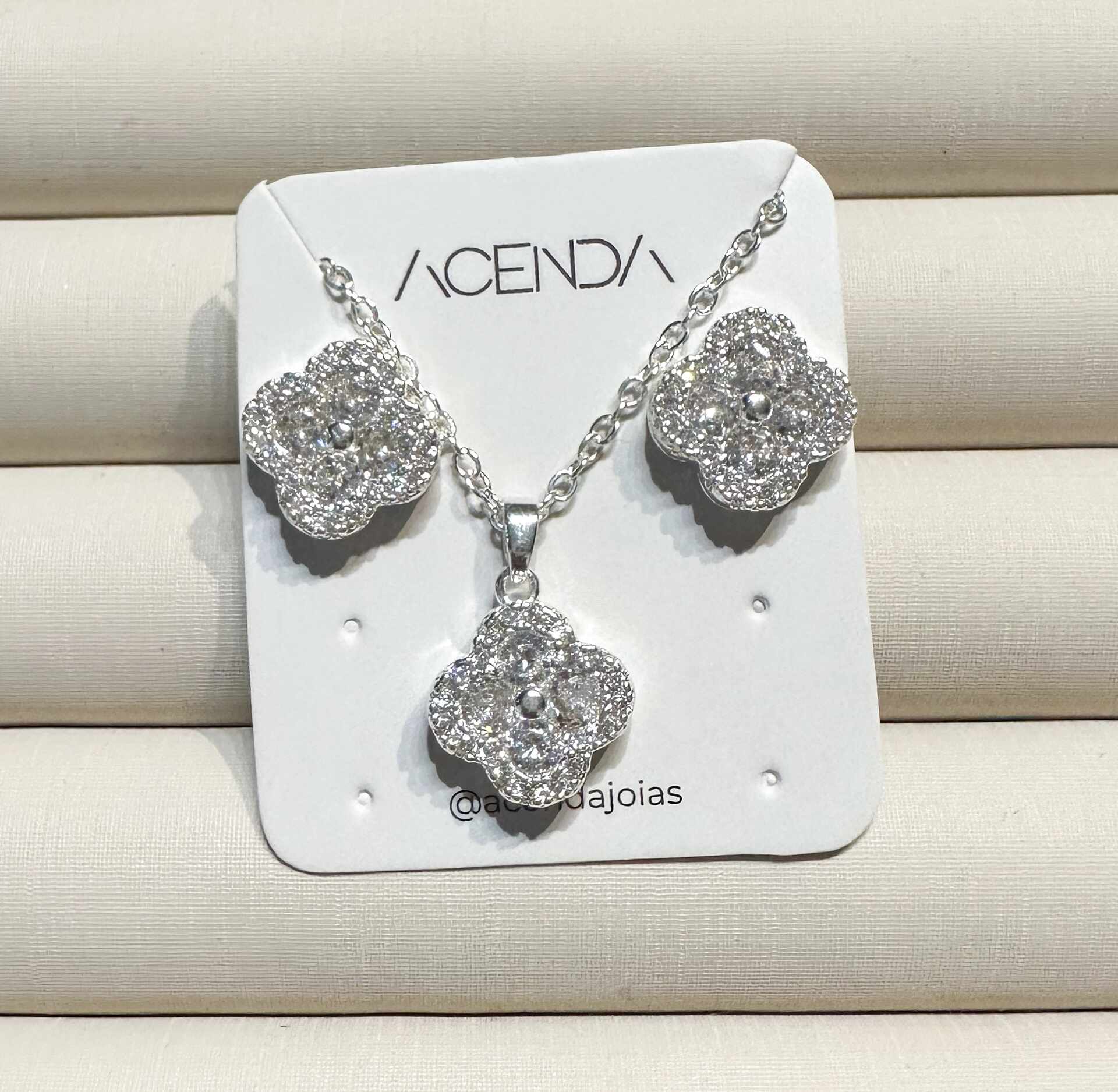 - COLAR TREVO CRISTAL CRAVEJADO BORDAS PONTO CENTRO PR
