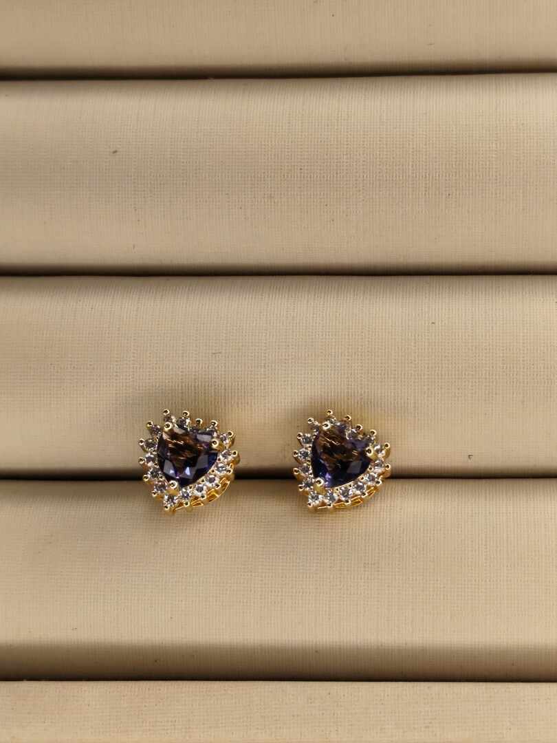 CONJUNTO MINI CORAÇAO AMETISTA CRAVEJADA OURO
