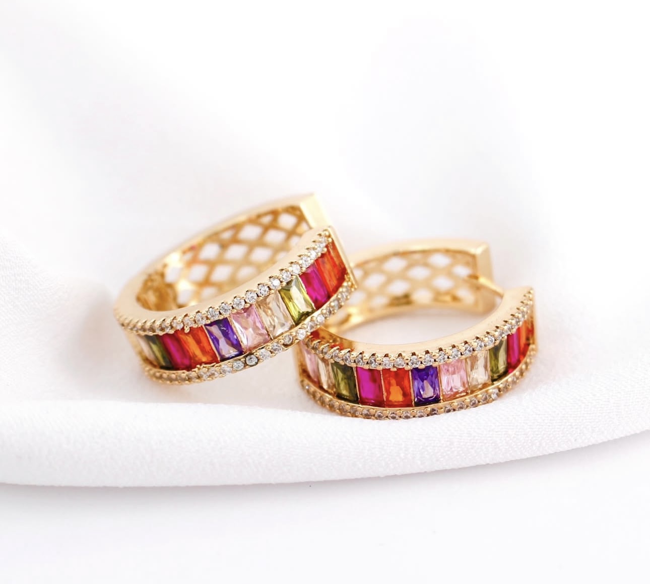 - BRINCO ARGOLA CLIQUE CRAVEJADO COM ZIRCONIAS BAGUETE CRISTAL