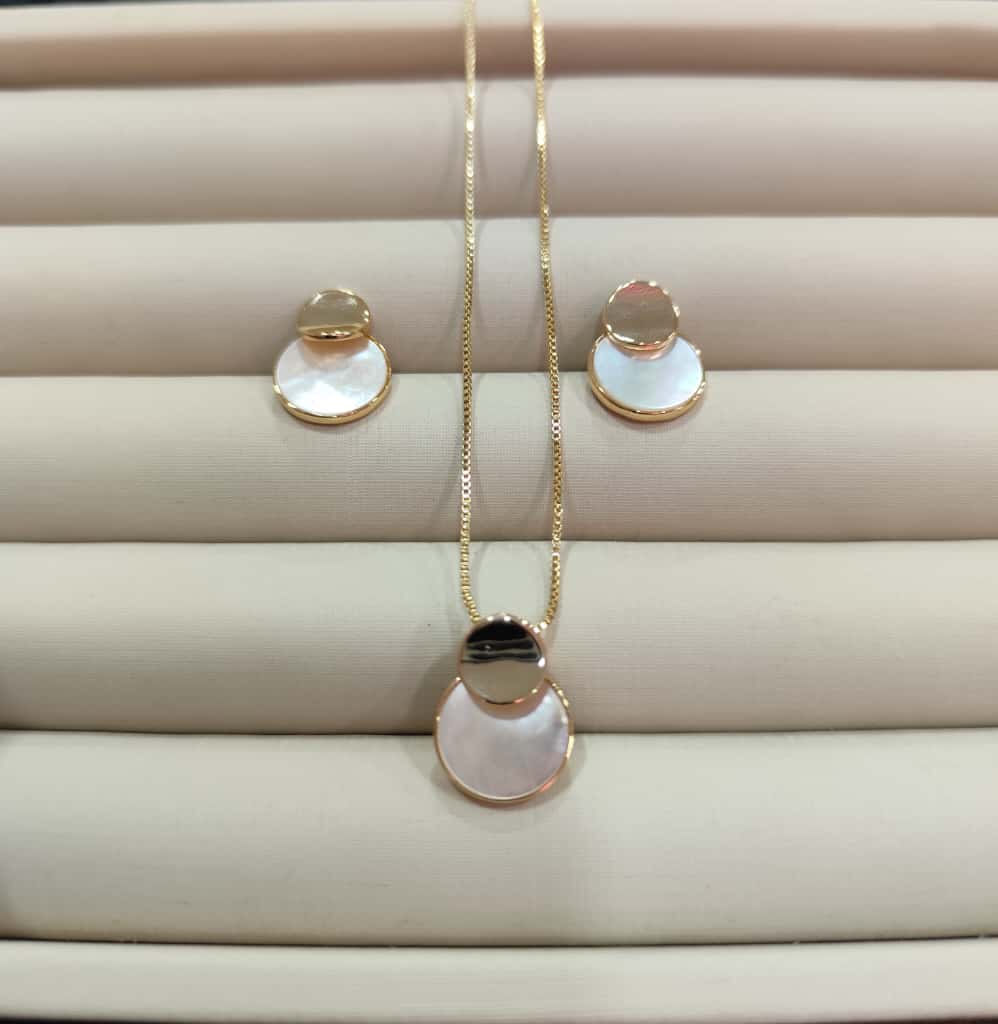 CJ COLAR E BR ESFERA MADREPÉROLA E ESFERA LISA BO